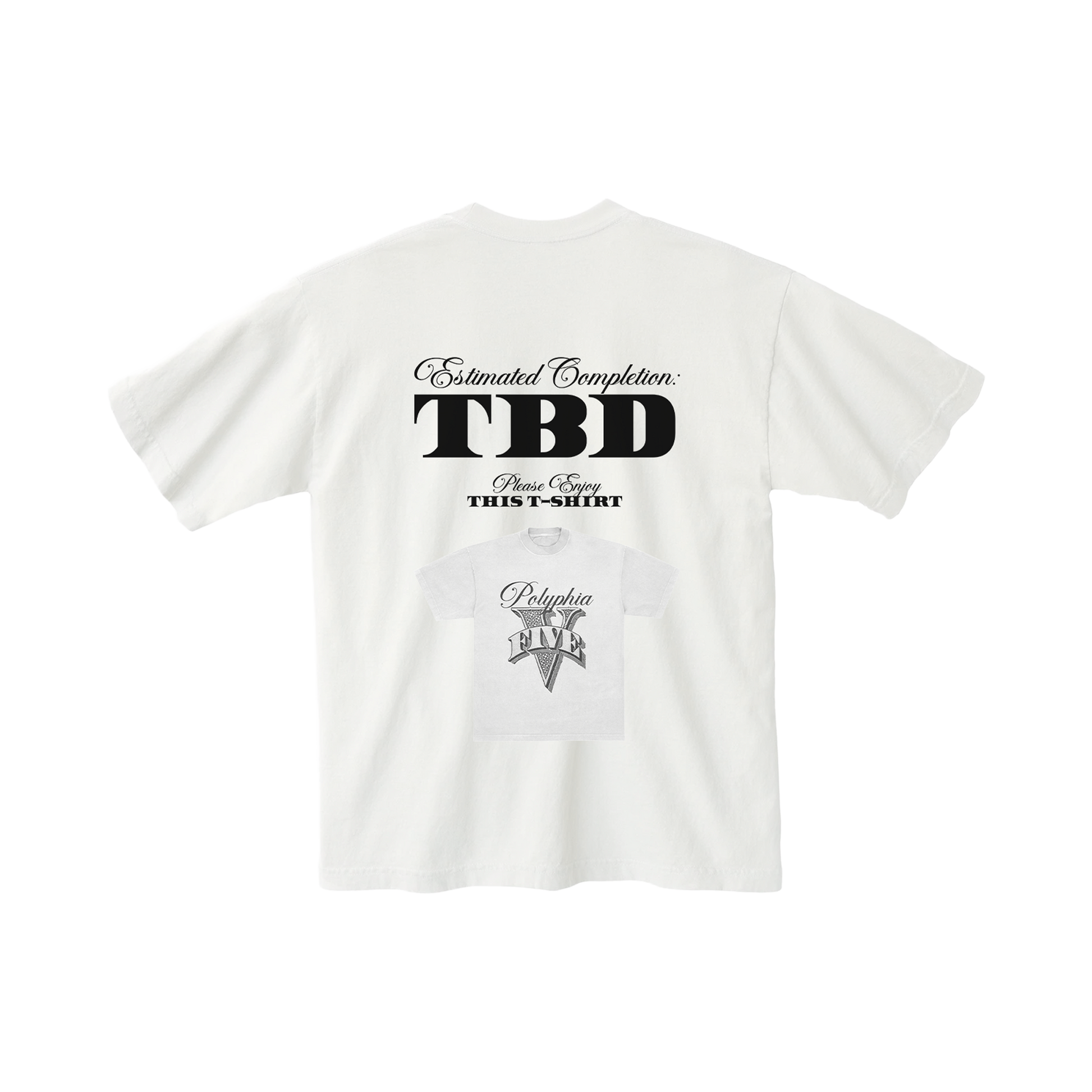 "Please Enjoy" design printed on the front and back of an off-white, garment-dyed 100% cotton LA Apparel t-shirt.